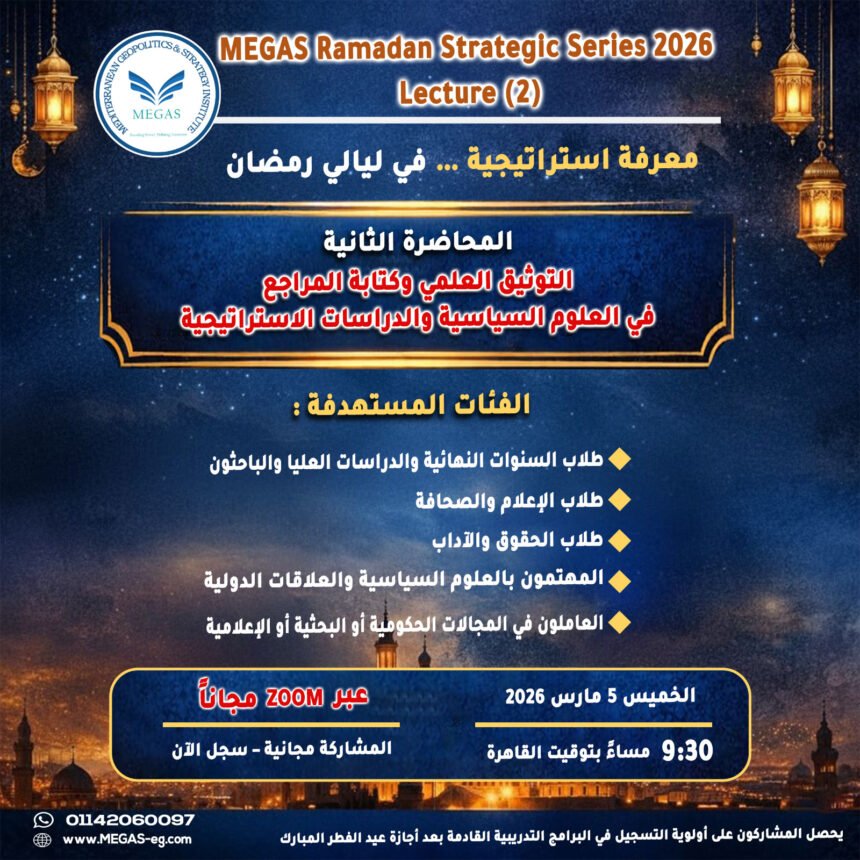 محاضرة (2) | MEGAS RAMADAN STRATEGIC SERIES 2026 "التوثيق العلمي وكتابة المراجع في العلوم السياسية والدراسات الاستراتيجية" هل تملك فكرة…